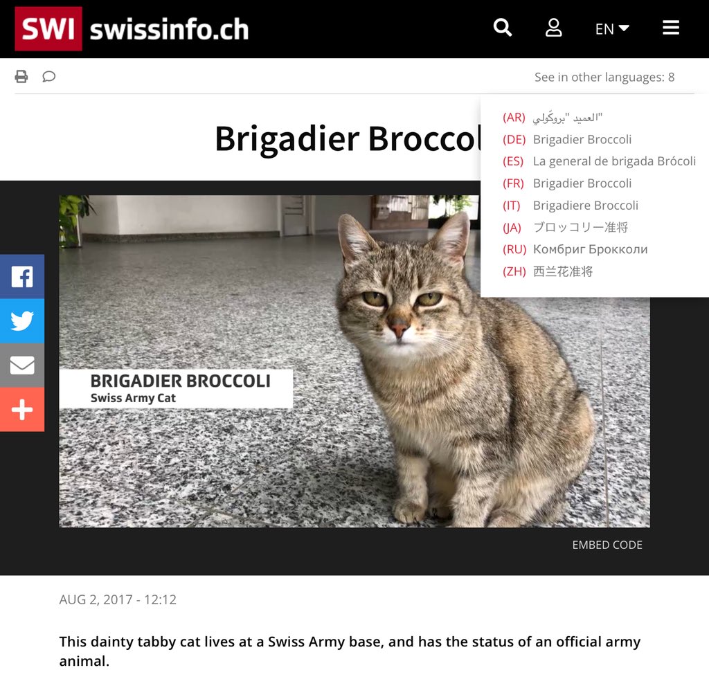 Brigadier broccoli's brothers in arms, london, united kingdom. 007 is a hint at the fact that this cat is also a spy. Brigadier broccoli sorgt seit gut acht jahren für gute stimmung bei den soldaten und rekruten auf dem waffenplatz in lyss. Au fil des nombreuses années qu'elle a passées à la caserne, elle est devenue de plus en plus connue. While resembling broccoli in appearance, botanically it is more closely related to turnips. Ruvo) is also known as broccoletti, italian broccoli, rabe, and rapini. How will they get back to earth? Remove from heat and let rest until cool enough to handle. Brigadier broccoli wird von ihrer armeetruppe getrennt lyss. The slr content in the remaining three cultivars was still higher than in unheated broccoli after. Known as brigadier broccoli, this dainty tabby cat lives at a swiss army base and has the status of an official army animal. Form into small balls and eat at once or chill until serving. Concentrations of the other glucosinolates.